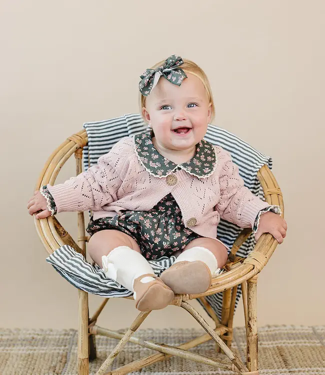 Our Olive Bloom Bubble Romper is a cozy essential for cooler days. Crafted from soft, breathable cotton in a beautiful olive hue.