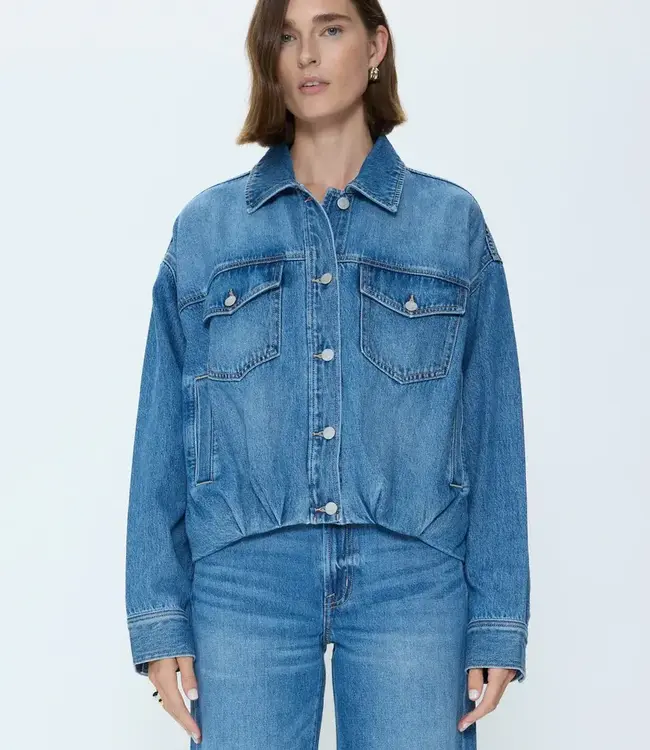 Designed with a slightly blouson silhouette, this style offers a softer, roomier feel than your traditional trucker while still keeping that timeless denim look. The relaxed shape drapes easily through the body with just the right amount of structure for a comfortable, effortless fit.