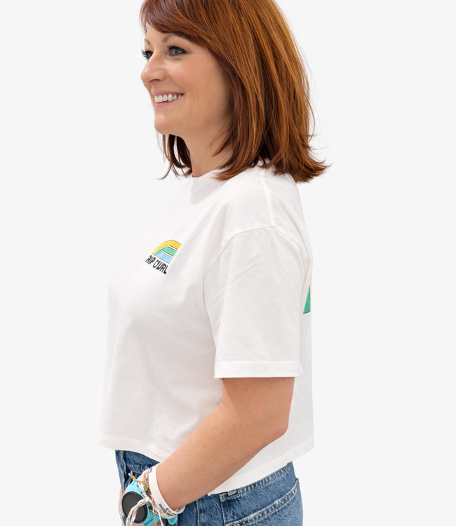A fresh take on a classic tee — the Rip Curl Surf Side Cropped Tee in Bone pairs relaxed comfort with a modern cropped silhouette and signature branding. Designed with a classic crew neckline and soft knit fabric, this tee hits just right at the waist for easy styling with high-rise denim, shorts, or skirts.